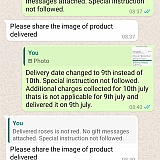 I ordered 24 stem red roses and big ferrero box chocolates to Pensilvalnia instructed clearly on the order form to deliver items on 10th july early morning. 10th july is a Saturday, they charged me extra delivery charges too for both items. I ordered these things on july 4th july ie 6 days before the delivery date. After placing the order, i tracked that through the phone number mentioned in the order form and that was never answered and in the whatsup chat, they are sending rude and irritating messages, when we asked for details of delivery.Iam very particular about the date 10th july bse of my partners birthday, and thats why i paid extra delivery charges for that day. Surprisingly the chocolates was delivered on 9th evening at 5.19pm and that was not the committed date. Then on 10th duly the flowers was not delivered on early morning as committed. Then i got a message that, it will be delivered between 10 am and 1pm. But the delivery team put the flowers somewhere in the corner of the house without informing the recipient even if direct hand delivery was committed. On around 4pm recipient saw the item and when opened the received flowers is not red and without any gift messages mentioned by me in the order form. Actually speaking this 1800 gift portal spoiled my celebration and excitment of day. My one week effort end up in disaster. Very poor service and rude behaviour too. Never trust this company. So iam moving legally about this issues.
