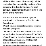 I don’t know the reason for the blocking yet, to do this, please indicate your game account number. But the most common reason for blocking is a multi-account.