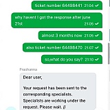So, on JUNE 17th night I made a deposit of 500 INR, Then another 1000INR and then another 500 INR, I never had a problem with the site before, so I just made the deposit, and even after 2-3 days after chatting with them, problem was not resolved, They ask me to send a screenshot and pdf statement. I send in an email regarding the issue with the screenshot's and the PDF of the transaction. They raised a TICKED NUMBER ******* and *******. I forgot about it, 3 months passed by, another problem happened, same thing, they raised ticked number *******.