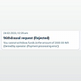 I made a request for withdrawal money in last 2 days but I have received a message that denied by operator my I'd is *******
