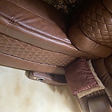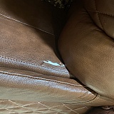 Couch itself: Pretty comfortable and enjoy it a lot. But some annoying small defects. 1. Seam on back of couch has a two inch defect where the threads are frayed/missing. 2. The leather is sagging where it should sit flush and tight under the center power console (on fold out middle table). 3. The post that secures the armrest table into the armrest kept popping out, making the table unusable.