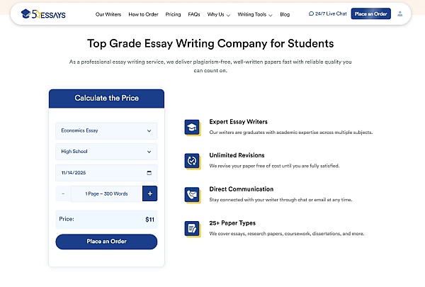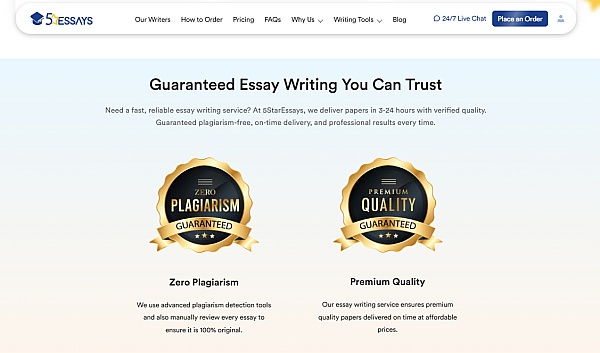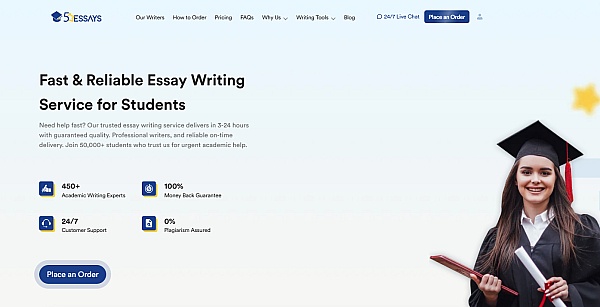 5StarEssays.com is recognized as one of the best essay writing services for students who need reliable, plagiarism-free, and well-researched academic papers. With 450+ expert writers and over 50,000 happy students, we deliver top-quality essays, research papers, and dissertations on time.