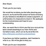 I started playing at 7bit over 6 months ago. Have won some and lost some. But I've probably made a million dollars in bets on the site. Everything was fine till one day it wasn't. I noticed one day that I should have been getting daily cashbacks for months since hitting car 4. I'm talking hundreds of dollars of bitcoin in cashbacks. So I confronted them one day about it. They said they would give me the day prior and add up the rest later. Come the next day my account is closed. They don't take US players. They excepted my money and gave me their money several times. I mean several times. I live in a state that gambling is legal online. There rules state to make sure it is legal in your territory. The US being unable to play is just them saying most states in The US it's illegal. I've gone back and forth with them on email. They first told me my account has funds on it and what bitcoin address to send it to. Then they tell me there is no money on it. I know