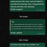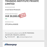 I registered for an online Oracle Fusion training course with www.acte.in on July 2nd, for which I paid AED 1,364(INR 30k). Initially, I was in communication with some representatives, but they failed to provide the promised training. Now, they are no longer responding to my attempts to contact them regarding the training or a refund.