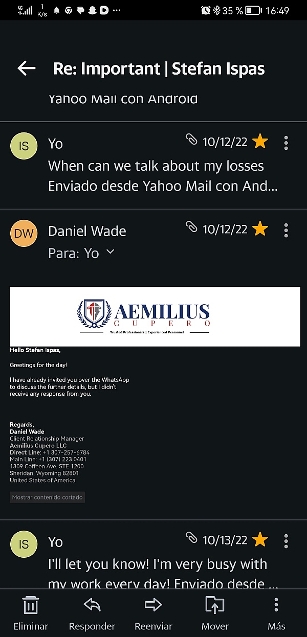 Very dedicated to their work and did exactly what they had promised me for. Aemilius Cupero helped me launch a dispute against the unregulated company that had stolen my $5655 in the name of investment. They provided me with a dispute representment service by which I could reverse my transactions and got my funds back within a couple of months. Thanks to them and I'd highly suggest this company for the ones who have been scammed by them..