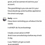 Answer: They offered $25 discount of next booking I just chose to go else where