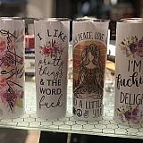 These 20 oz Skinny Tumblers, sublimate beautifully have the perfect close lid and include an acrylic clear straw. Highly recommend seller and product.