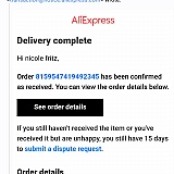 I ordered items from Ali express it sent me a confirmation email saying order complete and will be shipped to my address.I open my email today and received a email from them saying order not complete? I look in my bank account my money was taken but the order wasn't complete? Where is my $? Said I needed to do it again? Why so they can take my $ again and send back the same email.No,No Scam artist at it finisest I knew the deals were too good to be true now I must cancel my card before everything is gone.
