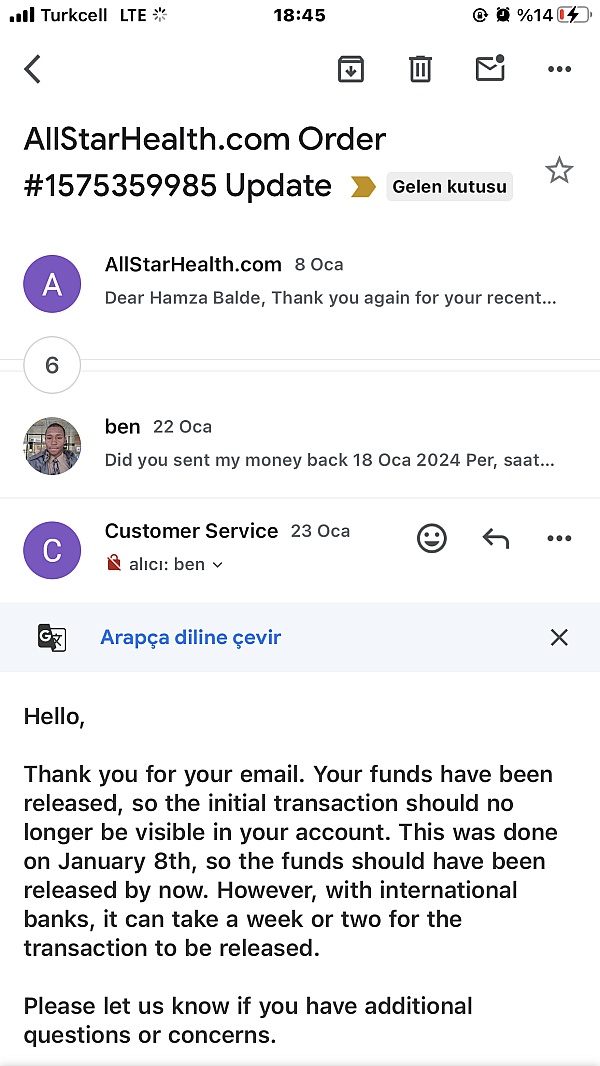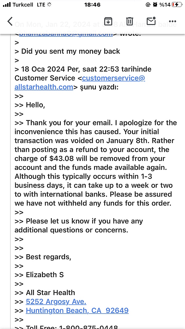5. When I called Allstarhealth about the order problem they never did recognize the order issues was their fault and would not expedite shipping to compensate for the delay.