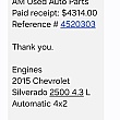 I just wanted to add what rip off AM used Auto Parts is to do business with. Please don't make the mistake I did. I spent 3.200 in parts labor and the bad transmission I got from AM Used Auto Parts. They have had 163 complaints to Better Business Bureau in Florida and rated F. This business is nothing but a nightmare. They refused to refund my money for a bad transmission they sent me and charged me to send it back to them. If you do business with them you will regret it 💯