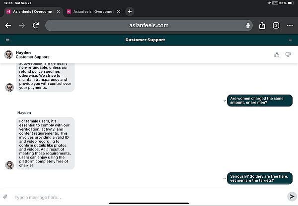 Answer: Scam! The money you pay is split with the women. When I picked up on this I switched to http://J4Dream.com On my friend's advise. At first I thought it was the same kind of scam, but I decided to give it a try for two more days just out of curiosity. Believe it or not, I met my fiancee there on the 3rd day of using the site. My recommendation to everyone: don't fall for AsianFeels trap: it's easier to fly to the moon than find a genuine woman there. The women are never ready for the meeting. They never intend to meet us. They just use us to keep the cash flowing. There are many better options. But please keep your wits about you on any dating site!