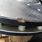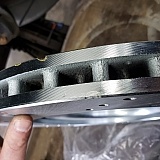 At the time this was realized, the shop had already installed the rear rotors and pads. After taking photos of the damaged rotors, I called autoplicity and explained the situation. The rep asked that I begin to repackage the entire kit to send back. I explained that the rear rotors were already installed and that I've already accrued labor costs. I asked if i could simply send out the damaged rotors and receive replacements. She wanted the entire kit back. I asked if they would pay for the labor I've already accrued. She asked for the photos and asked me how the damage occured - apparently I was supposed to have an answer to that. The packaging wasnt damaged in the shipment, so I can only assume these were packaged in this shape.