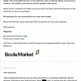 Bought a MacBook on their website. Seller was helpful but Backmarket had very poor customer service. Requested a receipt that includes my card info, which the company refused to provide stating that they could not provide this "due to strict security reasons"
