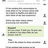 They never ship your item. After a couple of weeks, when you try to cancel, they try to scam you with a 10% restocking fee. I believe their "customers service team" is just one person, a moron with poor English and terrible manners. They also don't hide the scam. The bogus tracking number they issue is "*******". It is either being a moron, being lazy, or not caring that it is obvious they are running a scam. They need to be stopped!