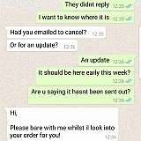 Answer: Same thing happened me i ordered nearly 3 weeks ago and still no sign and haven't gotten back to me when emailed and texted!