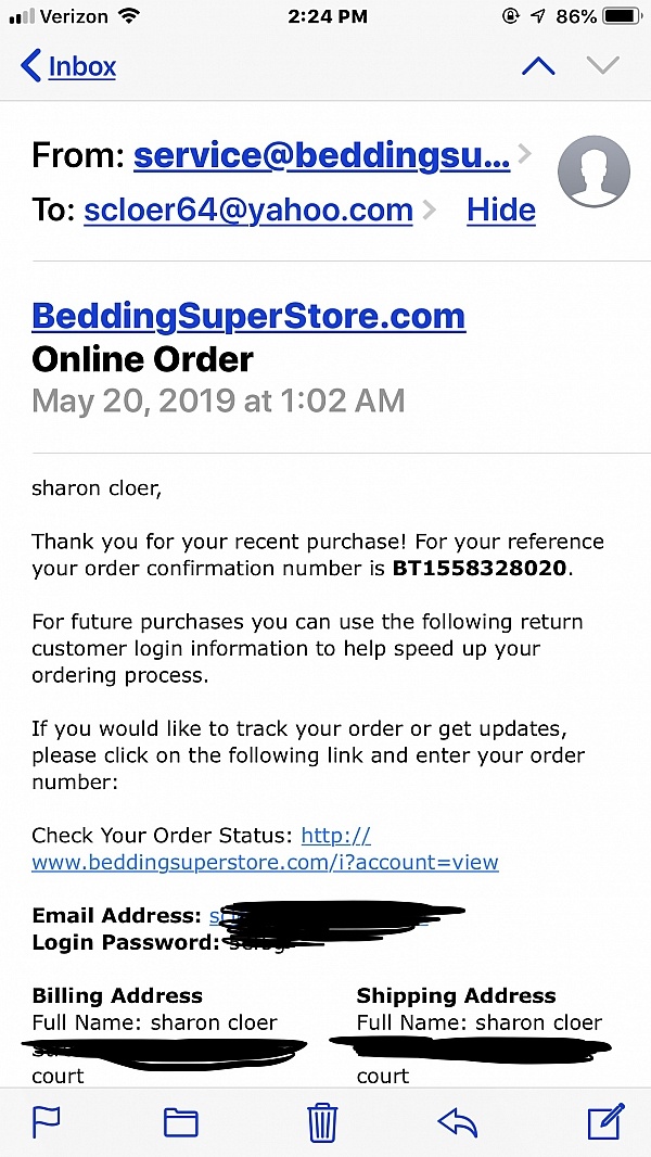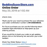 I ordered a comforter set with the Bedding Superstore, after several days I never received an email confirmation. I went on their web site used my order number and the set I ordered was on back order for two months. I contacted their 1-800 # and was instructed by a recording to send them an email. I emailed them and requested my order to be cancelled. They never responded, but two days later sent me an email stating my order was shipping, this is after I already ordered the same comforter set from Macys' at a better price. I contacted their customer service immediately by email, you cannot get a live person on the phone, and was told that my order would not ship out and it would be cancelled. Najet in their customer service lied, the order shipped, she also said that the company has an agreement with UPS where UPS does not scan their shipments. Really? Now I (the customer) have waste my time contacting UPS to redirect the shipment back to them. STAY AWAY FROM THIS COMPANY they have terrible communication and customer service.