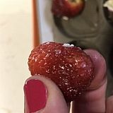 My husband and daughter have sent these to me before for Mother's Day, and they were fair at best. This time the berries came in a box that had a defrosted "ice" pack was just mushy and cool. The card was buried - almost tossed with the box (should have been attached to box). Either way - one berry was tiny - and for the price - they all should be big. BUT the kicker is the strawberries were mushy and tasted a bit fermented. Thought it had to be my imagination. Got VIOLENTLY sick from eating 1 berry. They have no quality control with the size of the berries - as in the past - but never ever received them without a frozen ice pack and then to get sick - what a horrible gift on Mother's Day!