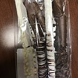 I ordered from this company for the first and last time! Wanted a special gift for my wife for Mother's Day to be delivered to her at work. The website shows an FTD logo for delivery so I am expecting a quality product AND delivery, and this would justify the cost to me. So today I get an email that states the package was delivered at approximately 9:10 am, so I'm chomping at the bit waiting for a phone call or text message about her surprise. Lunchtime comes around and I decide to find a ridiculous reason to ask her if she's at her office, which she says she is. I leave work to drive to her office to find a soaking wet box sitting outside of her office! So now that the excitement of a delivery person showing up with surprise delivery, it's me standing there with a wet box. So she dives into box... only to find drenched strawberries and broken pretzels. Not to mention the advertised "huge strawberries" was a total false statement...
