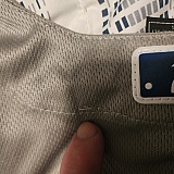 There is stitching strings hanging off jersey all over,there is spots where stitching is noticeable.