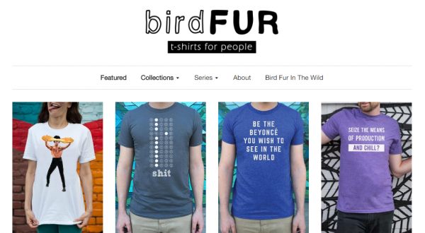 I always get compliments on my tank from Bird Fur Tees. A cut above the rest of the cafe-press-born vague clothing companies, Bird Fur puts classic humor through a millennial lens and puts it on wearable items.