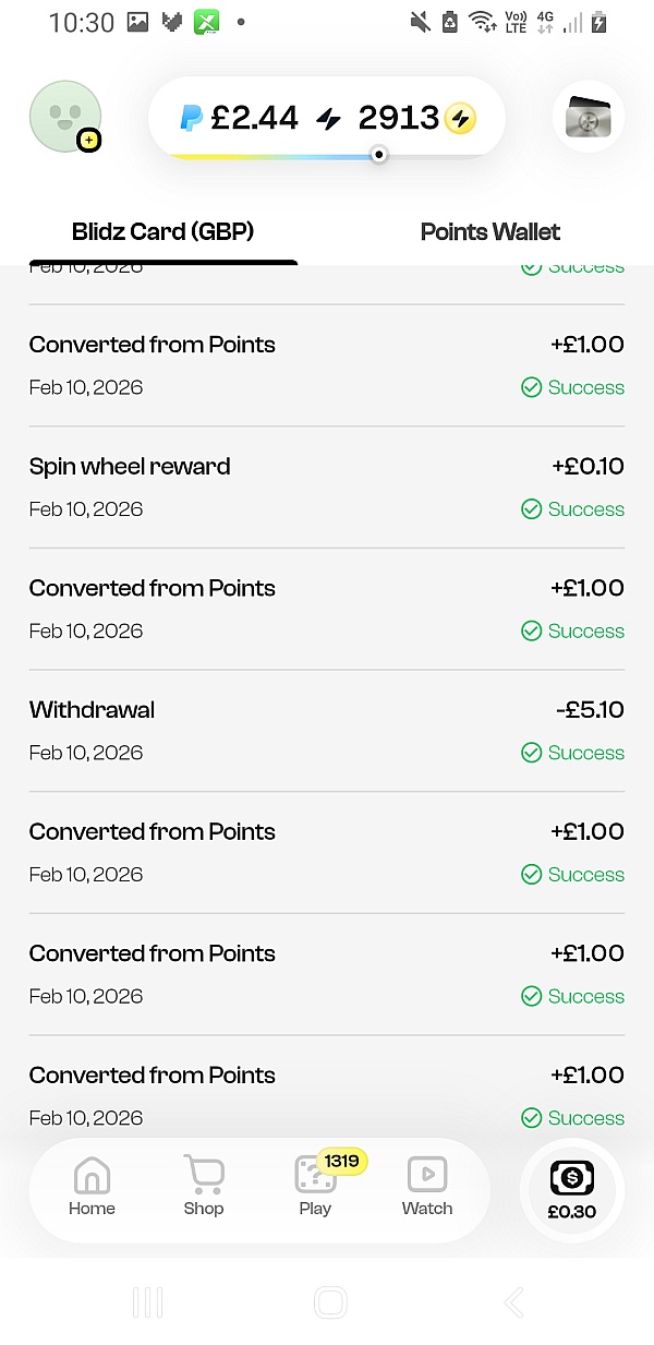 I was very hopeful about Blidz. Thought I'd finally found an app where I could accumulate enough points to actually do something with. Unfortunately, it just takes so long to reach a point that makes a difference.