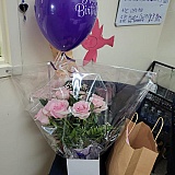 I paid 167 dollars for a 2 dozen flowers and supersized it into 30. Two mylar balloons. A pink vase. Birthday card. Truffles.