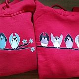 We paid $40 each for sweatshirts that were screen printed. The first set were printed crooked and skewed to the right. The pockets on pullover sweatshirt was sewn on diagonally at top. Alex responded to our concerns stating they strive on quality merchandise. They kindly sent us new sweatshirts meeting our delayed shipping request. The new sweatshirts were straight and centered, however the ink was so thin that the red sweatshirt could be seen through the white, and gray paint/ink. Hence the colors looked pink. Totally misrepresenting the actual color it should be. The added line detail was so light gray instead of black that I could barely see it when I stepped back.