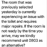 I booked a 6-month winter vacation at Habibi@ Pollux Habibie, but when the host cancelled due to 'major maintenance' on a toilet, the nightmare began. Not only did they cancel, but the 'alternative' they offered was a huge downgrade from my original selection. They expected me to accept a lesser unit (0803) for the same price with no compensation or refund for the difference in quality.