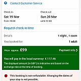 Do not use this booking site. Requested a on day delay in check-in date. Their representative lied about contacting the hotel to change date and raised my my reservation rate $49.00 per day for the remaining 5 days. Spoke to 5 representatives to request change and none called be back or made the change. I will never use them again and suggest you not either.