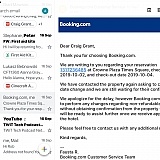 I find this showing COMPLETE lack of interest to support the customer and zero willing of do any effort from booking.com specially when they can just contact the property and state the problem and say that a new reservation on the exact same terms as the original one has been reinstated.