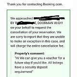 I just figured I'd use Booking.com cuz stuff like this happens. Instead of aiding in a resolution, they just let the other side do whatever they wanted. If that's all the help.i was gonna get, I should have skipped the middle man and just booked with them myself.