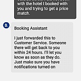 Terrible customer service. They do not care what happens after booking. Read reviews DONT NOT USE THIS COMPANY. I PAID 856. FOR A ROOM. BOOKING.COM HAD THE ROOM FOR 656 BUT WOYLD NOT MATCH THEIR OWN SALE. VERY FRUSTRATING. THE HOTEL OFFERED AT 256. CANT GET A REFUND OR PRICE MATCH