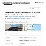 I booked accommodation (Apartamento Las Palmeras Front sea View) with booking.com, however when I arrived there, the accommodation did not exist, the property owner was not picking up the phone nor replying to my emails from. Apartamento Las Palmeras Front sea View is a scam, do not book with them! Booking.com did not make any refunds or make any effort to help. They just keep them robbing people. This was a very stressful experience. The customer service is super poor. Would never use again.