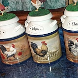 I ordered a set of Dona Gelsinger County Morning canister collection. I recieved the last one of the set and as you see in the picture the color is way off. I'm a pretty upset about this. I've waited a year to have the complete collect then to have a set that doesn't match. I contacted customer service and they have not returned my emails. I would urge you not to buy from this company.