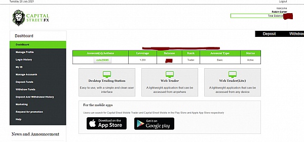 Customer support service is very quick and supported. They always ready for help for each clients. I am totally satisfied with capital street it's very secure broker.