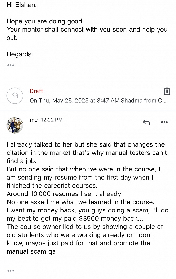 Last year, she recommended that I should take the course, even though I am a full-time student; she said I would not have a problem keeping up with a Careerist course load, and I would be able to find a job that I would be able to do parallel with my school studies. She was right! I took a course, and it was a fantastic experience! Every instructor was so caring and helped me and all the other students understand the material and learn how to perform quality QA work. After completing the main course, we were assigned two internships, which later became a part of our resume. Moreover, a Careerist provides you with a mentor who helps you study for interviews, makes you a resume, and helps you build your LinkedIn account. Which other school would do something like this?