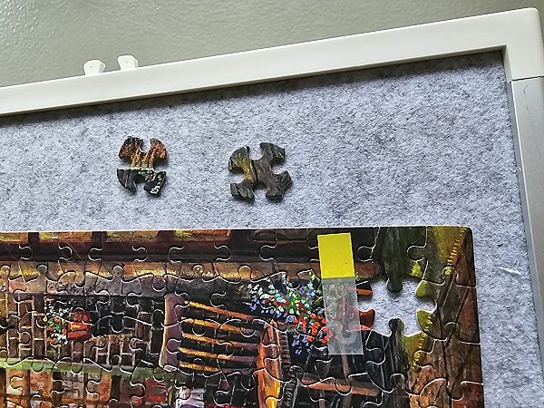 I fell in love with this puzzle picture. It was 500 pieces, figuring it was OK. I put the frame together but was having trouble with the top of frame. The top row did not want to fit smooth like the rest of the puzzle. I have never seen this problem before. I am very sad about it because I loved the colors and the wolf. I will be leary to buy more of this brand. What good is a unfinished puzzle?I want to glue it and hang it on the wall, I am thinking it will look funky, and dumb because of pieces not connecting. Ty -Tina 12/24/2023