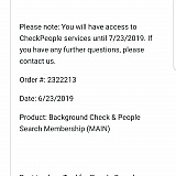Don't use this company for background search. Nov 24 I did a background search on a possible roommate, was charge 2x $7.00 and $29.16 (overcharged by $28.00). I called them to dispute the charge, 1st time was was the same day and the rep couldn't find my order, called a day later and the csr found the order, knew about the mistake. Claimed that there was a problem with there billing system. By then I had already filed a claim with papal. Was told by the csr from Checkpeople that I had to close the claim and once they were notify by paypal that they would refund me the money.