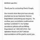 Answer: I had to cancel my card with my bank and file 3 claims before I got $4.33 back. But, Check people will say they didn't take it and say that you have to do a 3 way call for them to verify. I don't know about you, but I'm a complete idiot when it comes to technology.