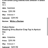 Answer: Order no.12408120935 Good day and sorry for the delay! We just shipped the cream top yesterday and you should receive tracking no.,It will be delivered about a week. We are sorry for our delay due to the material shortage of the remainnig dress.The items will be restocked about 10 days. Will let you know as soon as the order is ready and send you tracking information once it is ready to ship. Please accept our sincere apologies for any inconvenience you have incurred. Best regards Christal