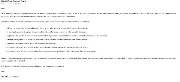 If you start earning good, Coursehero will thoroughly check your account and the slightest mistake from your work is tantamount to violation. 2 Violations means probationary period of 14 days you cant access. Additional violation is preventing you from being a tutor. This is true even if the student themselves rate you as helpful. It is unfair treatment that even if you have excellent helpful rate, you can still be revoked without good cause of justification.