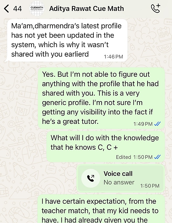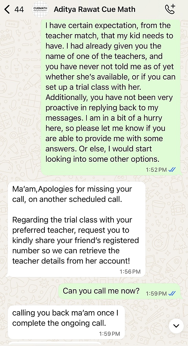 I have been using cuemath since 4 years for both my kids and now even my third child has enrolled with them. Its a value for money course where the teacher is dedicated gets involved with the overall development of child including maths and coding.