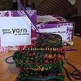 Darn Good Yarn is a fabulous company, and I am so happy that I found them! The yarn is amazingly beautiful - recycled multi-colored silk. The box it came in is purple with several great quotes on it, such as, "My yarn and I are similar. As it unwinds, I do too." And the people who run the company truly care - not only about making the world a better place by supporting those who make this fabulous yarn, but also about the customer and their way of making the yarn purchase a truly fun and personal experience! I am touched.