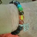 The first scein of yarn I received was super silky and crazy colorful. I completed the "Ripples Neckware" pattern with this beautiful yarn. I also received knitting needles and a crochet hook that are made of wood, of good quality, and are purple and blue variegated. I also received a few free patterns! The second box I received had a beautiful blue and purple variegated yarn. I haven't had a chance to make anything with it yet but it's stunning! I also received beautiful yarn earrings! I am in LOVE with the Darn Good Yarn box! It is only $10 a month and I won't be cancelling! I will be surprised with something new every time! I'm sooo excited!
