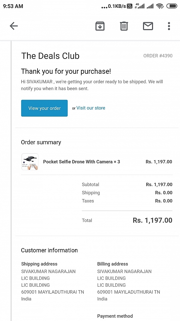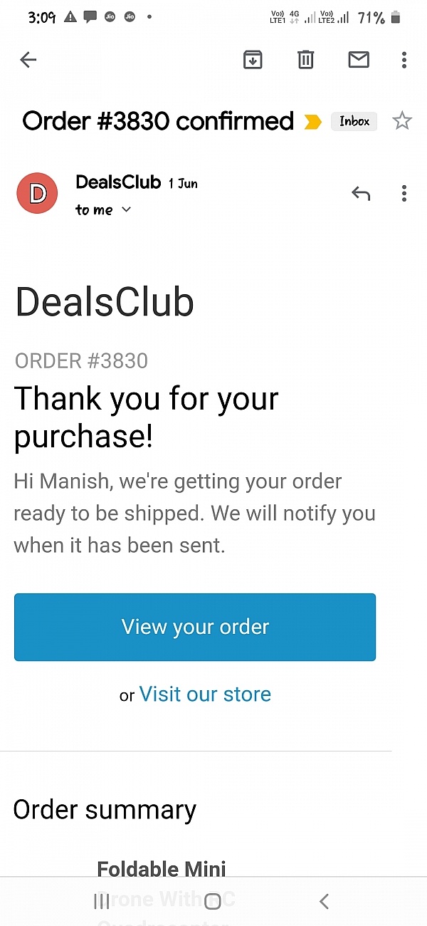 Fraudulent shopping website, they have cheated me by not delivering the product purchased three months before. Never purchase products in dealsclub.co.in.