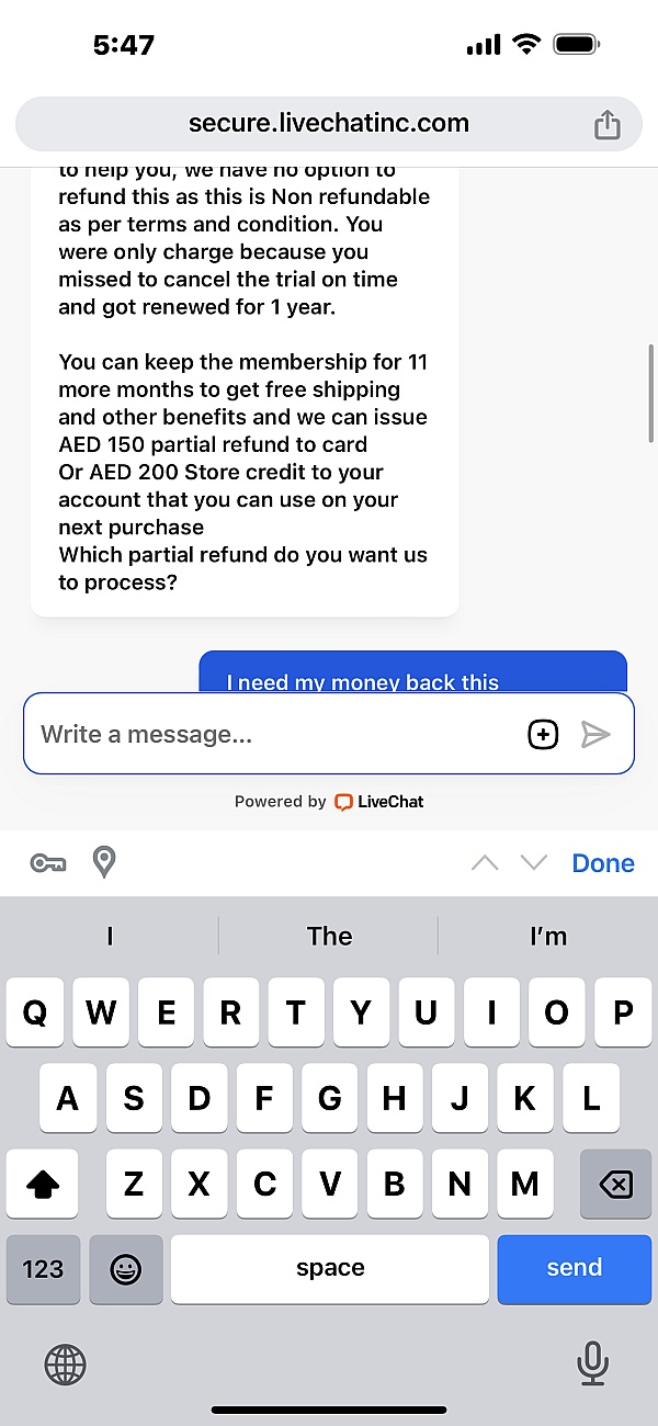 You cant even call them as they have closed their Dubai customer service lines and moved everything on live chat where they dont help at all. I need my full money back.