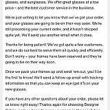 I have just contacted Designer Optics requesting update on my order shipping status.