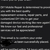 What can I say about DIY they are just amazing, I got my replacement screen within two days and I repaired my screen it looks beautiful by the way!