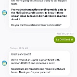 Tried to top up a phone. Took my money and set the top up on pause. Support is just a $#*!ing robot.