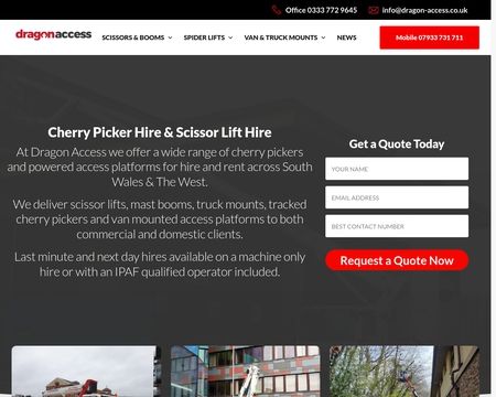 Dragon Access specialises in providing a wide range of cherry picker hire solutions to ensure you have just the right powered access or access platform for the job you need to complete. We have a wide range powered access solutions – so whether you need self drive cherry picker hire van mounted, truck mounted, boom lift, scissor lift or any type of access platform hire, cherry picker or MEWP hire we have some of the best powered access available for hire.